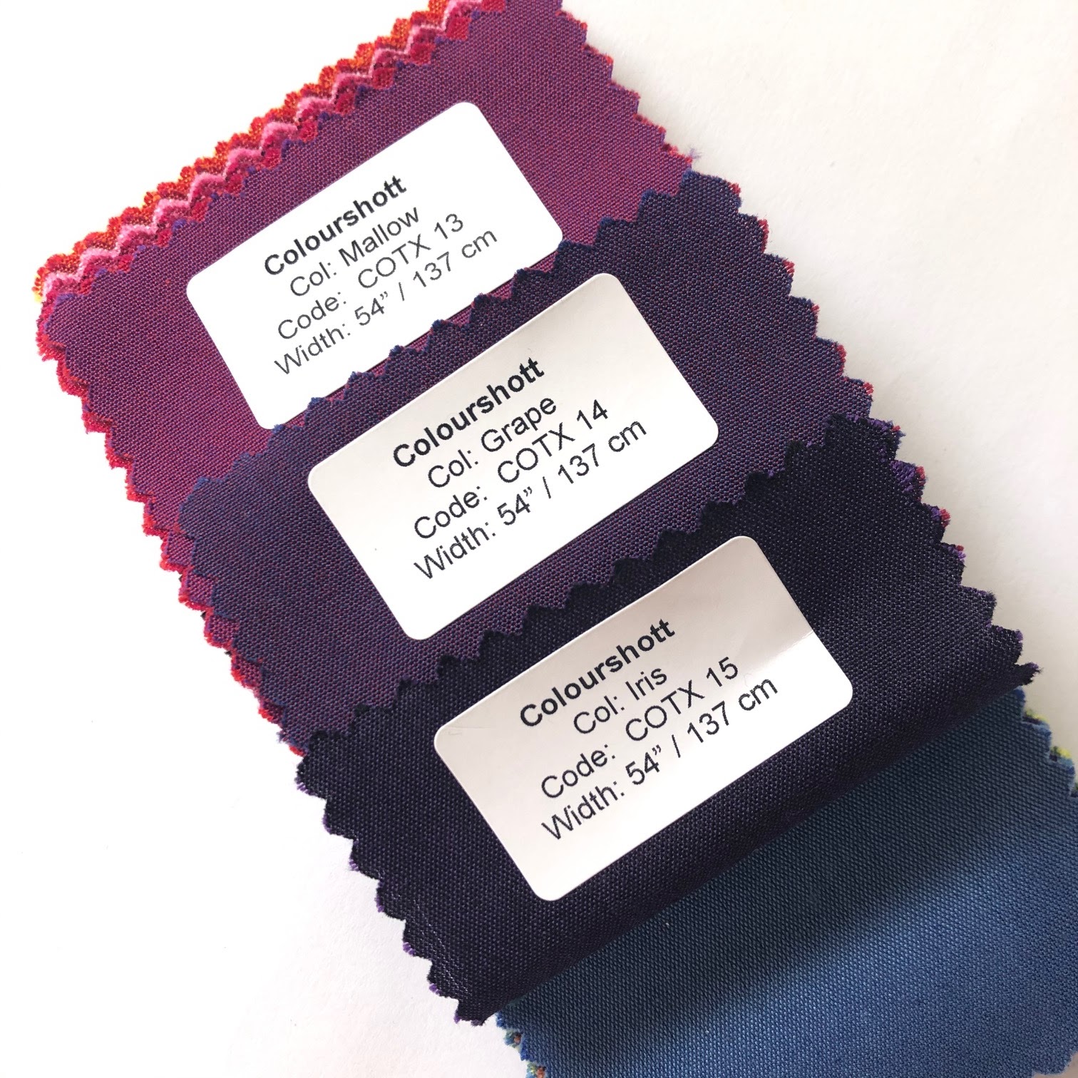 These are the 3 colours I used to make Varietals. Iris is black + purple thread, Grape is red + navy thread and Mallow is red + purple thread.
